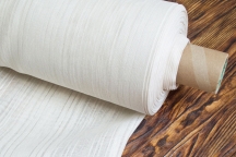 Льняной тюль - полностью прозрачная ткань спокойного бежево-молочного цвета. Она - тонкая, в узкую полоску с более разреженным переплетением нитей, что придаёт ткани визуальную лёгкость и нежность. Предназначена для украшения окон или визуального разграничения пространства. Благодаря своей прозрачности, такая ткань не будет оставлять четких контуров и очень хорошо смотреться в дорогом интерьере.