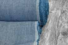 Плотная декоративная льняная ткань с меланжевым эффектом в крупный диагональный рубчик чередуемый сине-бирюзовой и серой нитью. Плетение не рыхлое, не просвечивает, хорошо драпируется. Может использоваться для плотных штор, скатерти, покрывал, чехлов, для мебельной обивки.