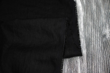 Плательный лён с добавлением вискозы черного цвета. Ткань с эффектом жатости и лёгкой мятости, достигнутых путём специальной обработки - стирки с энзимами. Благодаря энзимной стирке, лён приобретает приятные характеристики в виде невероятной мягкости и воздушности. За счёт наличия в составе вискозы, поверхность ткани обладает лёгким благородным лоском. Ткань - шелковистая, очень мягкая на ощупь, ложится в очень красивые немного струящиеся складки, более послушная и подвижная по сравнению с чистым льном, очень эффектная и стильная. Вареный или stone washed лён с вискозой не дает усадки и не требует утюжки после стирки. Для красивых, нежных платьев, юбок, эксклюзивных брючных и юбочных костюмов, сарафанов, жакетов.