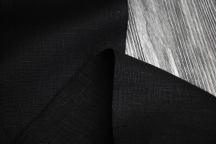 Достаточно плотная декоративная льняная ткань чёрного цвета. Нити переплетены между собой плотно, ткань - не просвечивает. Подойдёт для изготовления штор, скатертей, покрывал.