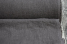 Льняная ткань красивого темно-серого графитового цвета с эффектом жатости и лёгкой мятости, достигнутых путём специальной обработки - стирки с энзимами. Благодаря энзимной стирке, ткань приобретает приятные характеристики в виде невероятной мягкости и воздушности. Такой лён пользуется большим спросом, так как не дает усадку и не требует утюжки после стирки. Ткань с таким эффектом ещё называют вареный лён или stone washed. Нарочитая лёгкая равномерная жатость и мятость делает полотно стильным, расслабленным, эксклюзивным. Такой жатый эффект пользуется особой популярностью в Европе. Изделия из вареного льна обладают определённым шармом, а их обладатель характеризуется изысканным вкусом. Ткань - средней плотности, не просвечивает, идеальна для бохо-платьев, брючных и юбочных костюмов, юбок, жакетов, брюк, сарафанов.