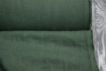 Потрясающая льняная ткань сложного бутылочного тёмно-зелёного цвета с эффектом жатости и лёгкой мятости, достигнутых путём специальной обработки - стирки с энзимами. Благодаря энзимной стирке, ткань приобретает приятные характеристики в виде невероятной мягкости и  воздушности. Такой лён пользуется большим спросом, так как не дает усадку и не требует утюжки после стирки. Ткань с таким эффектом ещё называют вареный лён или stone washed. Нарочитая лёгкая равномерная жатость и мятость делает полотно стильным, расслабленным, эксклюзивным. Такой жатый эффект пользуется особой популярностью в Европе. Изделия из вареного льна обладают определённым шармом, а их обладатель характеризуется изысканным вкусом. Ткань - средней плотности, не просвечивает, идеальна для бохо-платьев, брючных и юбочных костюмов, юбок, жакетов, брюк, сарафанов. Лен цвет 547, 2102.